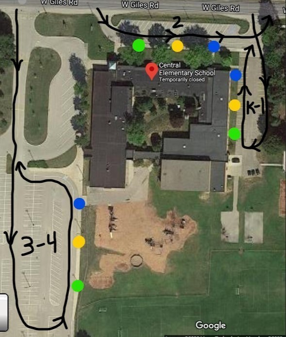 - 3-4: West side of the building near playground (parking lot connecting to MS)