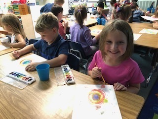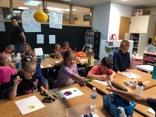 Our kindergarten friends are learning how to have meaningful conversations about their work. Mrs. Greene's and Mrs. Palazzolo's learners have had opportunities this week to be creative with paint, Playdoh an pattern blocks and then discuss what they chose to create and why with their partners. This is part of our English Language curriculum where kids are expected to collaborate and converse with one another, beginning with our youngest learners. It's fun to hear and see what the kids are making and how they explain to their partners. They are rising to the challenge and having fun using different materials.